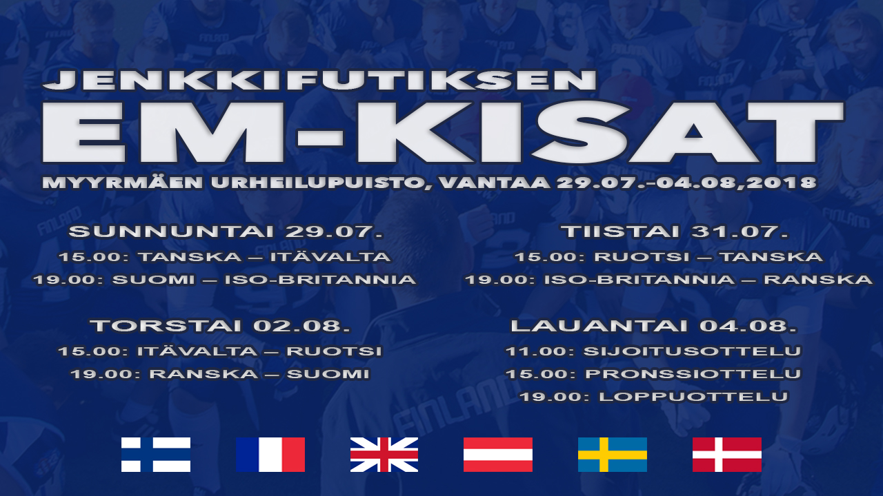 Suomi isännöi amerikkalaisen jalkapallon miesten Euroopan mestaruuskilpailuja Vantaalla 29. heinäkuuta – 4. elokuuta. Amerikkalaisen jalkapallon kansainvälinen kattojärjestö IFAF vahvisti Suomen kisaisännyyden tiistai-iltana.