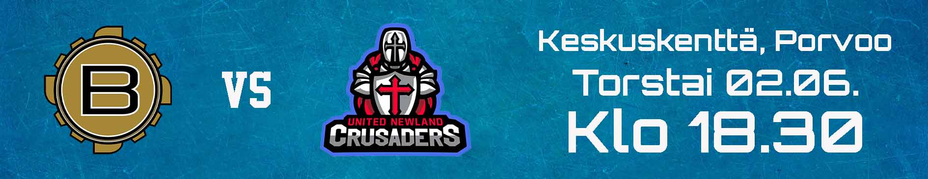 Pirteästi kautensa aloittanut Porvoon Butchers saa vastaansa kaksi ensimmäistä peliään hävinneen United Newland Crusadersin. Molemmat joukkueet ovat parsineet alkukauden peleihinsä rosterit kasaan niukoista reserveistä. Torstaina näemme tuoko kesäkuu helpotusta haasteeseen.