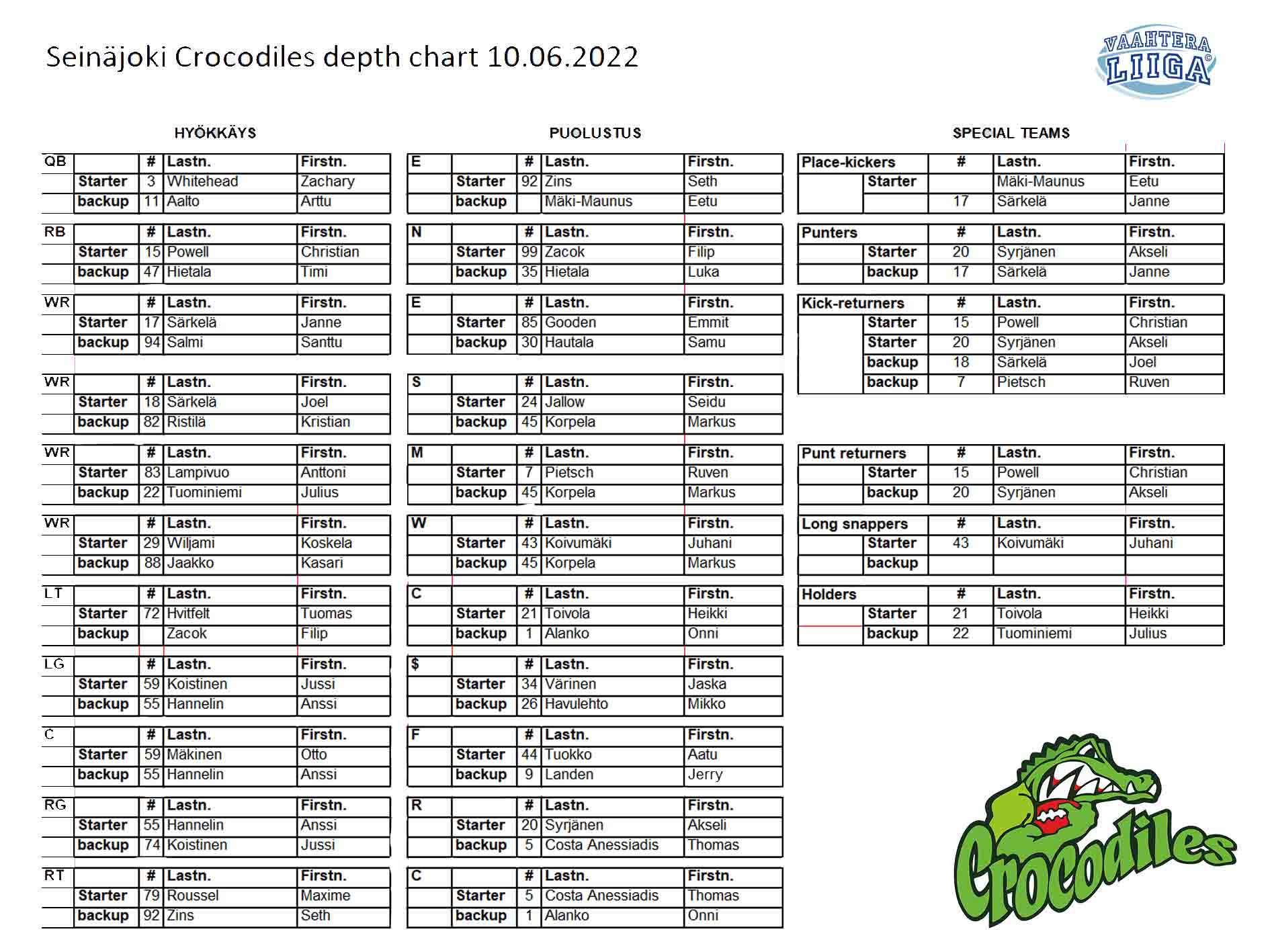 Seinäjoki Crocodiles on kahdessa avauspelissään kerännyt juoksujaardeja kasaan tasan 200.   Kun joukkueella on käytössään Christian Powelin kaltainen ase, voidaan lukemaa pitää vaatimattomana. Neljänä aiempana kautenaan Vaahteraliigan all-stars miehistöön valittu yhdysvaltalainen on onnistunut etenemään toistaiseksi ainoastaan 4,3 jaardin keskiarvolla, joka on rajusti alle miehen aiempien kausien keskiarvosta. Perjantain pelissä nähdään, onnistuuko seinäjokiset pelaamaan tilaa Powellin juoksuille kotikentän viheriöllä.
