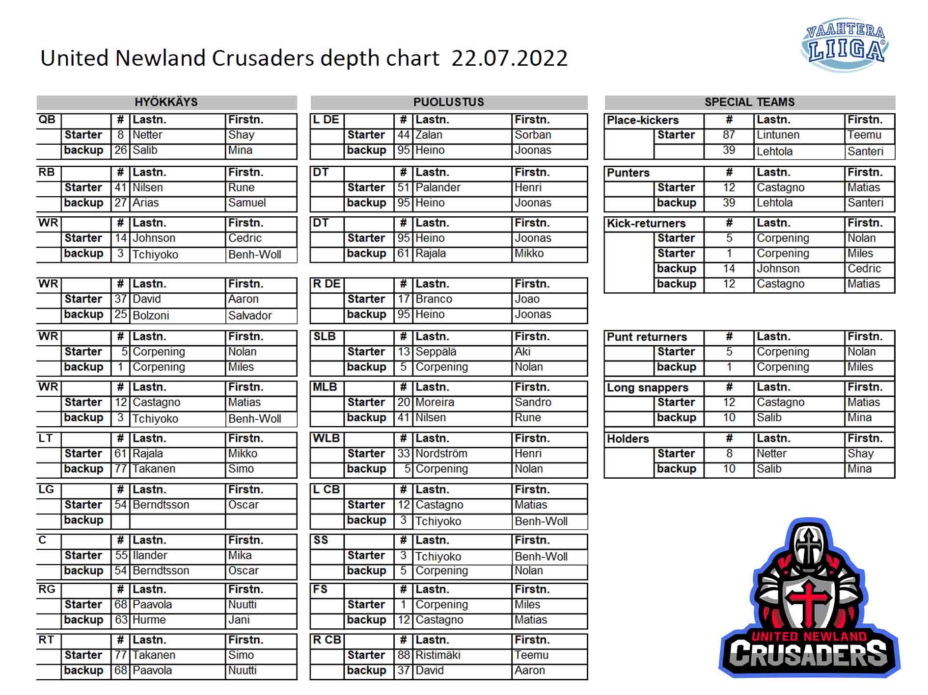 Kuopio Steelers vs Newland Crusaders (Jul 22, 2022 at Lohja)