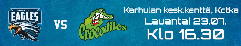 Kotka Eagles saa lauantaipelissä vastaansa vieraita Seinäjoelta. Vahvassa vireessä oleva pohjalaisjoukkue saapuu testaamaan kotijoukkueen kunnon.  Joukkueiden edellinen kohtaaminen Seinäjoella päättyi Crocodilesin suvereeniin voittoon lukemin 67-0.