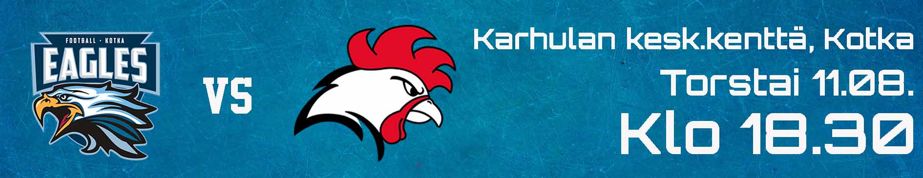 Vaahteraliiga-kauden kolmanneksi viimeinen peliviikko käynnistyy torstaina Kotkassa. Kotijoukkue Eaglesin kohtalo jäädä runkosarjassa viimeiseksi sinetöityi viikko sitten, ja näillä näkymin torstain jälkeen ei hetkeen Karhulassa Vaahteraliigaa nähdä. Vierasjoukkue Roosters sen sijaan matkustaa Kymenlaaksoon tavoitteenaan vahvistaa asemiaan taistelussa pudotuspelien kotiedusta.