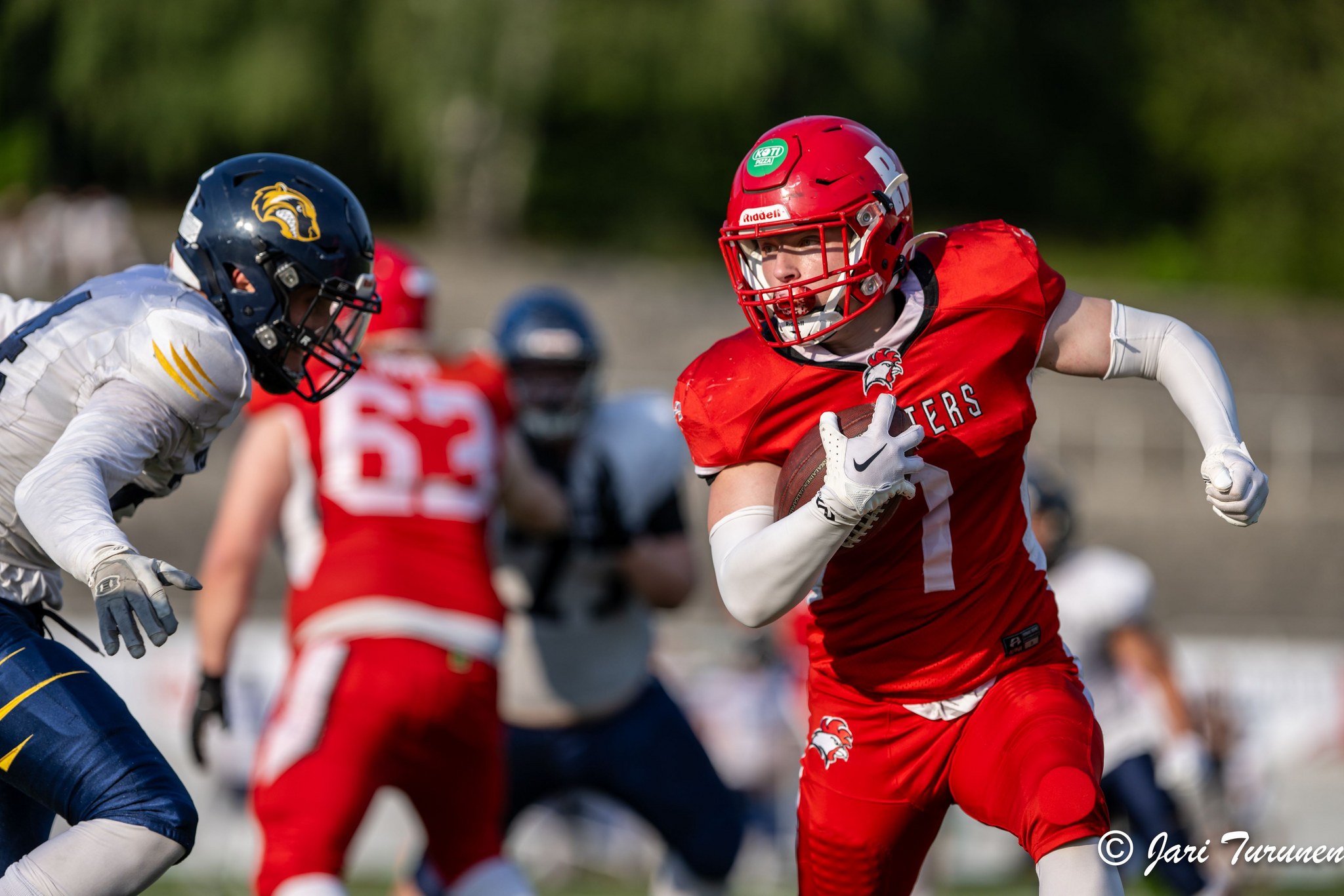 Molemmilla puolin kenttää pelannut Sifiso Salama kirjasi itselleen kaksi kiinniotettua touchdownia. Ensimmäisen noista heitti ykköspelinrakentaja Rasmus Laalo ja toisen heitti Laalon korvannut Teemu Hautakangas.