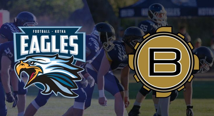 Kotka Eagles avasi vaahteraliigauransa tappiolla Helsinki Roostersille. Joukkue on nyt kokenut divaripallon ja liigan vauhdin eron ja valmistautuu kohtaamaan Butchersin kotiavauksessaan. Eagles hyökkäys saa kentälle perjantaina merkittävän vahvistuksen, kun yhdysvaltalainen laituri Peter Anderson avaa kautensa Suomessa. Pelinrakentaja Chris Forcier saa heitoilleen tasokkaan kohteen ja pakottaa porvoolaiset huomioimaan tämän puolustusryhmityksessään.