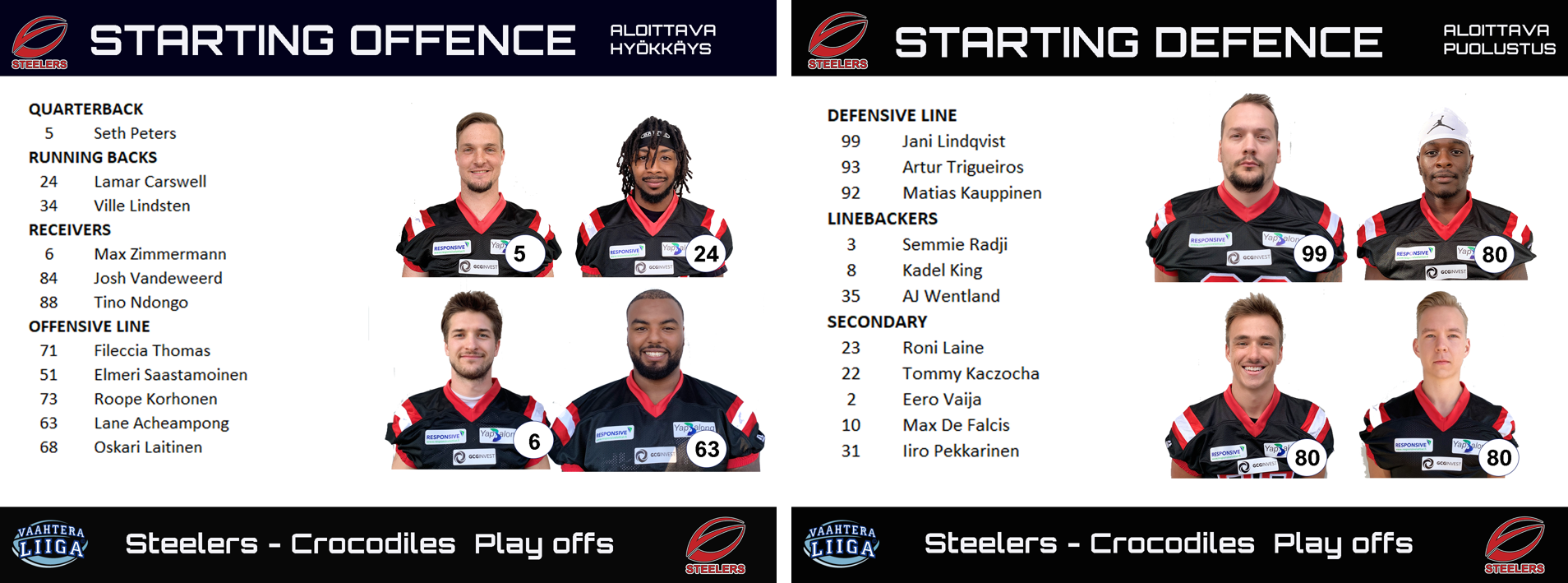Steelers on suosikki välierään. He luottavat siihen mitä tekevät ja tekevät sen hyvin. Mutta Crocodiles on nousukunnossa ja pääsee otteluun ilman mitään paineita. Todennäköisesti Crocoilla on hihassaan myös yllätyksiä, joilla Steelersiä aiotaan saada virheisiin.