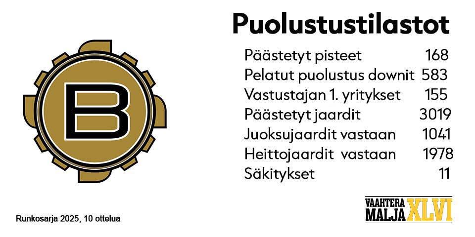 Puolustuslinjan ykkösmies Jesse Vuoksenturja on ottanut kolhuja kauden lopulla ja suuri vastuu jakautuu nyt tasaisesti Atro Heinosen, Julius Vuoksenturjan sekä huikean kauden pelanneet Noah Netteyn harteille.