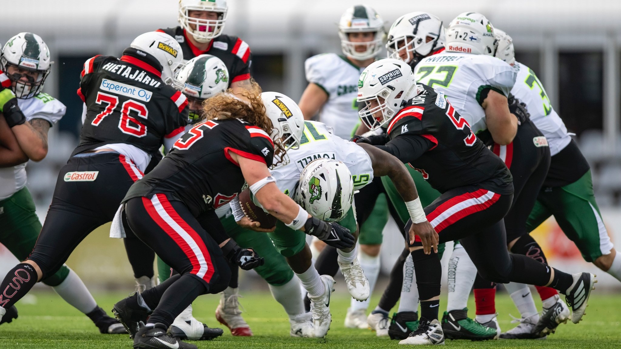 Steelers ja Crocodiles rymistelivät edellisen karran Vaahteramaljassa. Pelin vei niukasti Steelers 21-14 (Kuva: Jari Turunen)