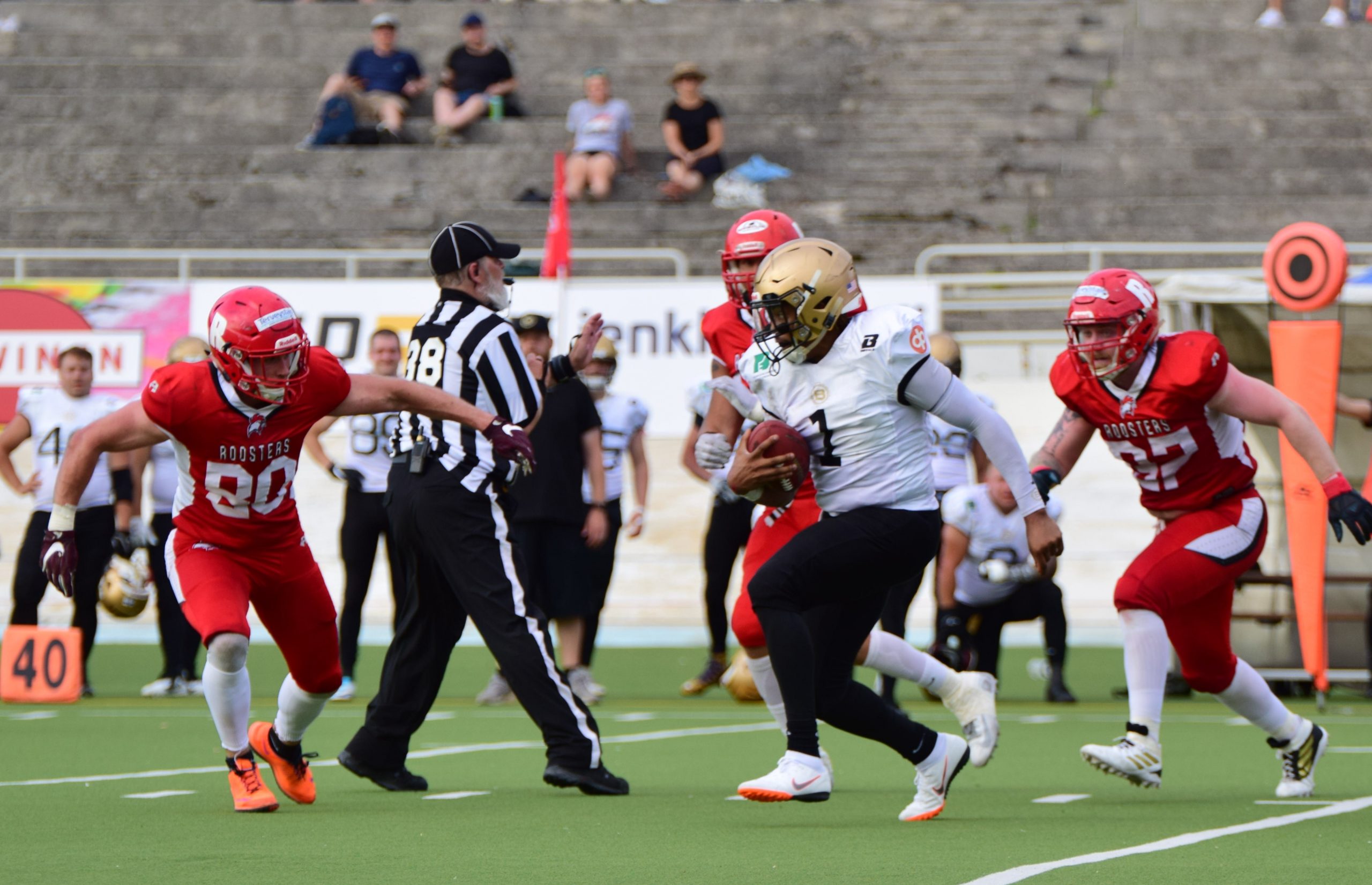 Porvoolaisten hyökkäys ei kriittisellä hetkellä saanut kulutettua kelloa riittävästi, ja Roosters sai pallon takaisin. Erkkilän 31-jaardisella kiinniotolla ja Andrecus Lindleyn 15- ja 16-jaardisilla juoksuilla Roosters vyöryi maaliin asti. Kun lisäksi Kyei koppasi lisäpisteet maalialueella, oltiin loppulukemissa 39–35. Butchers rakensi vielä toiveikkaan hyökkäysvuoron, mutta lopulta aika, yritykset ja keinot loppuivat kesken.