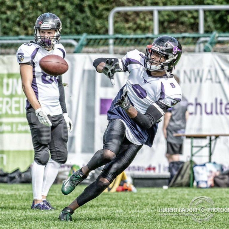 – Used the next year to recover and rehab and get back to full strength and continue to play football. After I was healthy I got my opportunity to play pro and I played in the GFL2 with the Langenfeld Longhorns., where I lead the league in yards and touchdowns. That leads us to present day, where I’m now here ready to embrace, lead, and make plays for the Helsinki Roosters. Looking to add to the tradition and championship pedigree that is the Roosters and raise up the trophy at the end of the season.