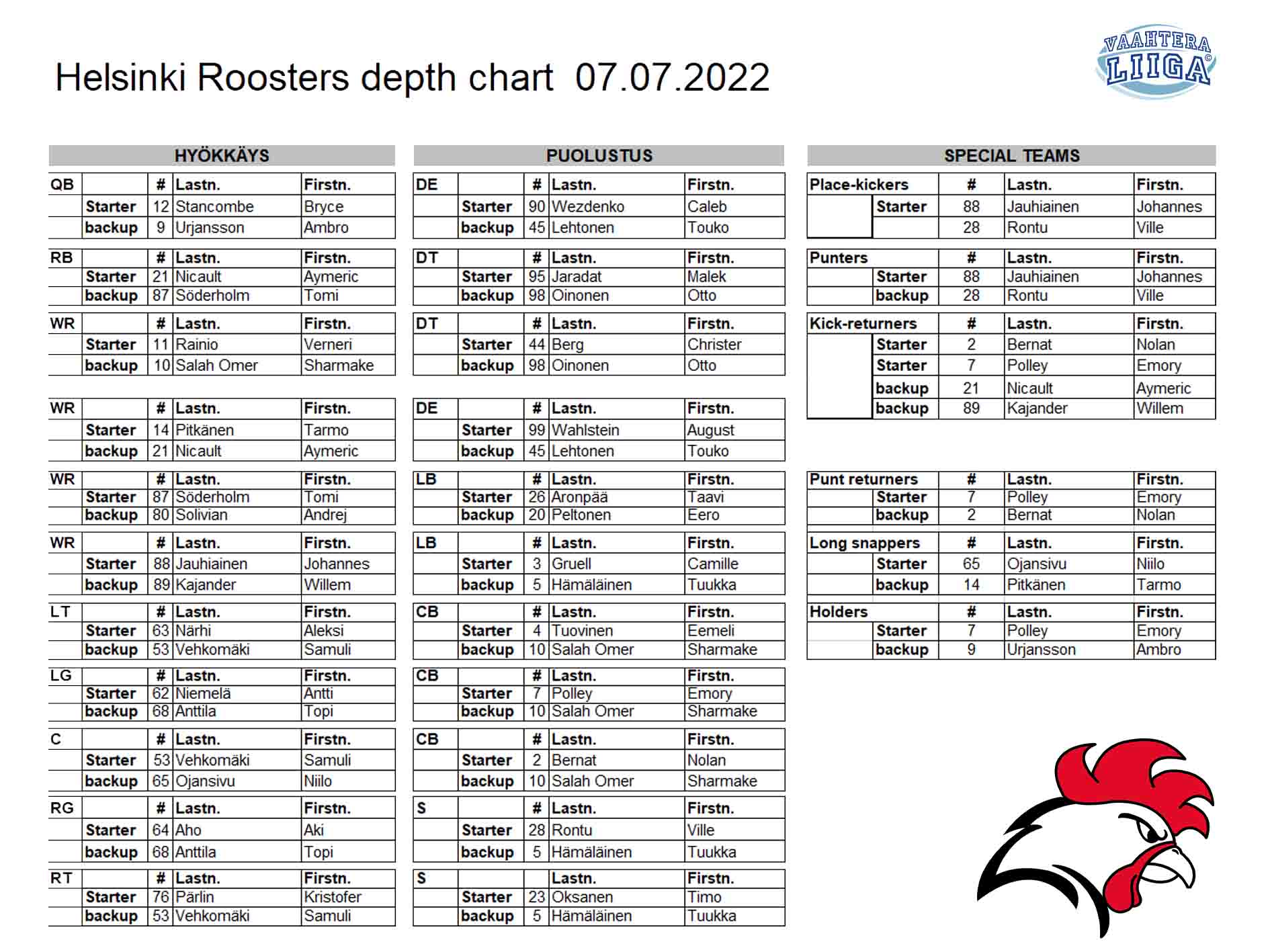 | Roo | 1-10 | at Roo29 | HELSINKI ROOSTERS drive start at 05:41, ROO ball on ROO29. |