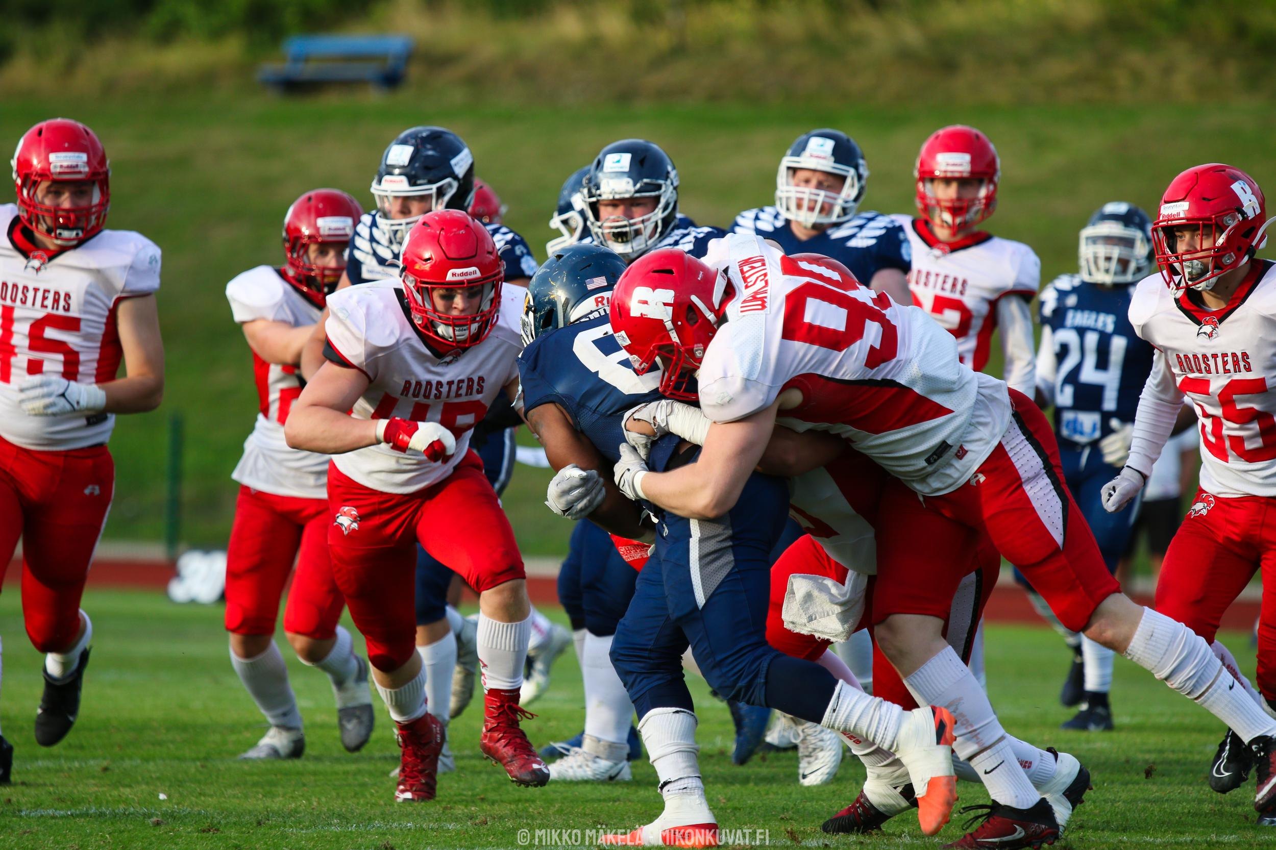Huippukautta pelaava Roosters-puolustaja Jaradat kokosi kentän suurimman taklaussaaliin, 7. Säkityksissä olivat Jaradatin lisäksi mukana Elias Ylitalo, Wedzenko ja Touko Lehtonen. Tukimieskaksikko Niklas Lagström – Jarno Lipola kokosi 5,5 taklausta mieheen.