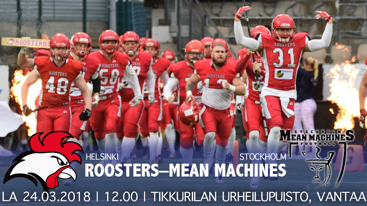 Tantereet ovat vielä lumesta valkoisia, mutta lauantaina jokainen pääsee simuloimaan itsensä kesän jenkkifutiskauteen, kun Helsinki Roosters ja Stockholm Mean Machines ottavat toisistaan mittaa Tikkurilan Urheilupuistossa kello 12 alkaen.