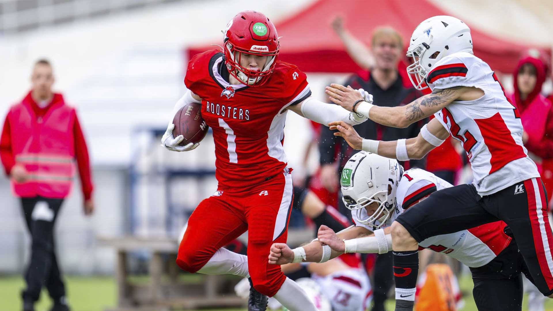 Helsinki Roosters ja Kuopio Steelers ottivat mittaa toisistaan ennalta tasaiseksi povatussa vaahteraliigakamppailussa perjantaina. Märällä Velodromilla pelattu ottelu päättyi kotijoukkueen niukkaan 13-9 (8-2) voittoon.