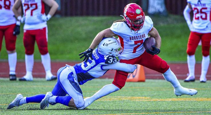 Roosters-hyökkäyksen suurin ilonaihe Pyynikillä oli nuoren Hermanni Raitasen touchdown.  Maalisuoritus oli koripallotaustaisen pikakiiturin ensimmäinen Vaahteraliigassa.