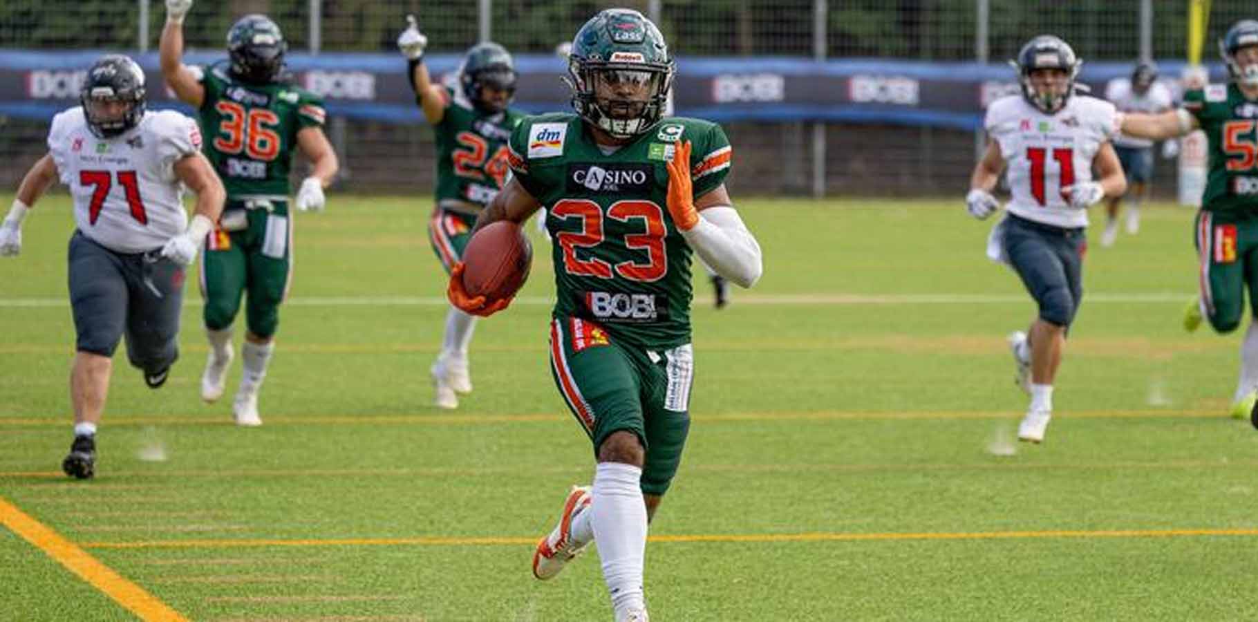 Justin Prostinak kerästi kaudella 2024 GFL:n 12 pelissään Kiel Baltic Hurricanesissa 247 jaardia ja yhden TD:n (Photo: Karsten Freese)