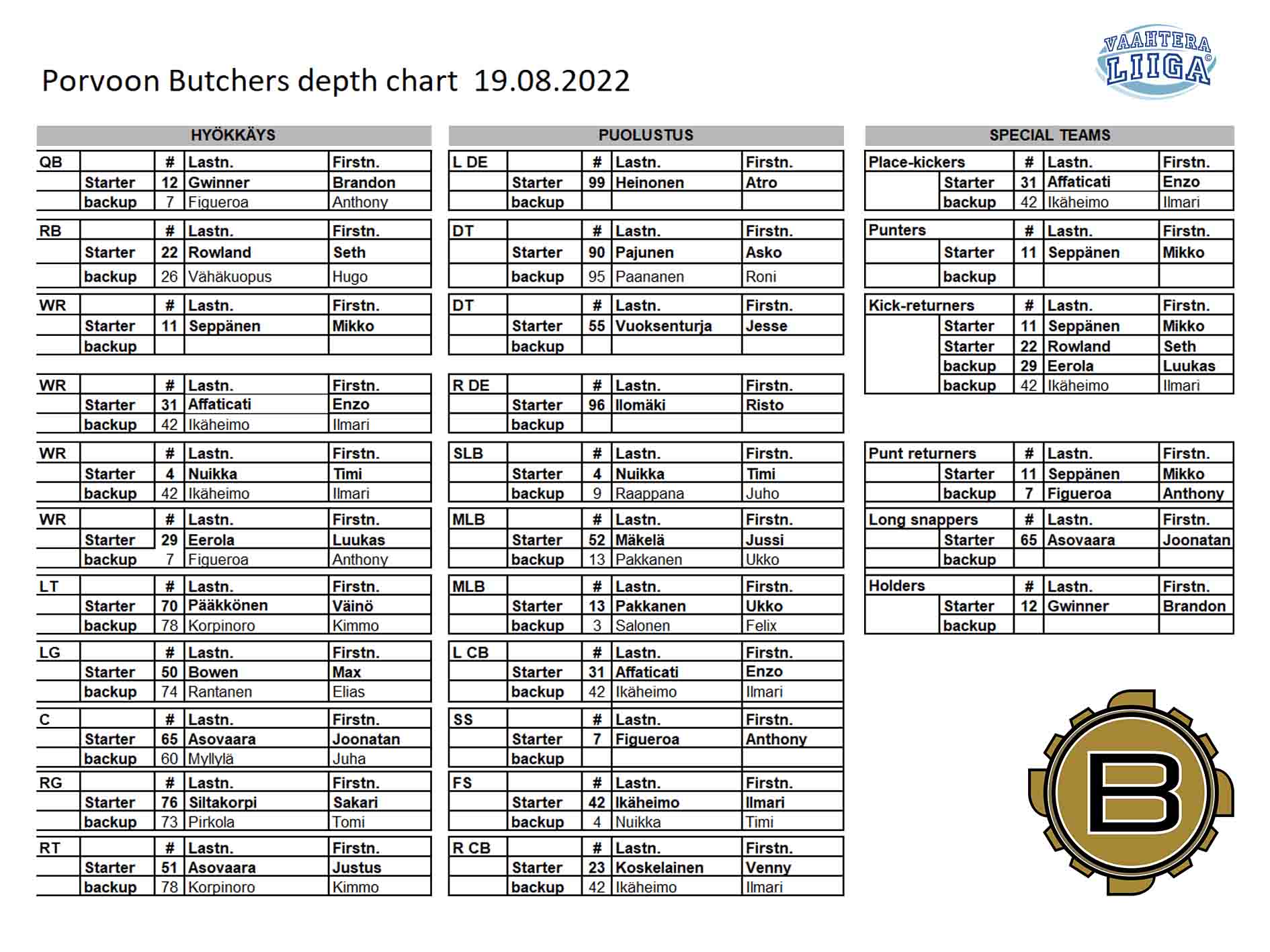 Butchers saa Vaahteraliigan viimeisellä pelikierroksella vieraakseen Crocodilesin Seinäjoelta lauantai-pelissä 27.8. Steelers päättää runkosarjansa kohtaamalla arkkivihollisensa Helsinki Roostersin Vänärillä perjantaina 26.8.