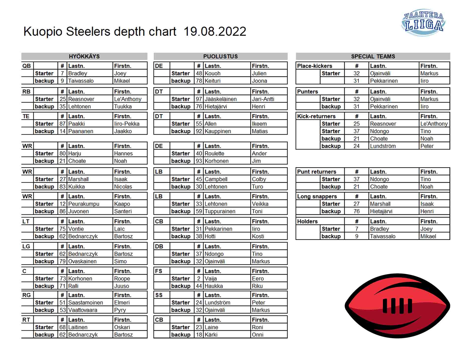 | Ste | 1-10 | at But26 | KUOPIO STEELERS drive start at 01:45. |