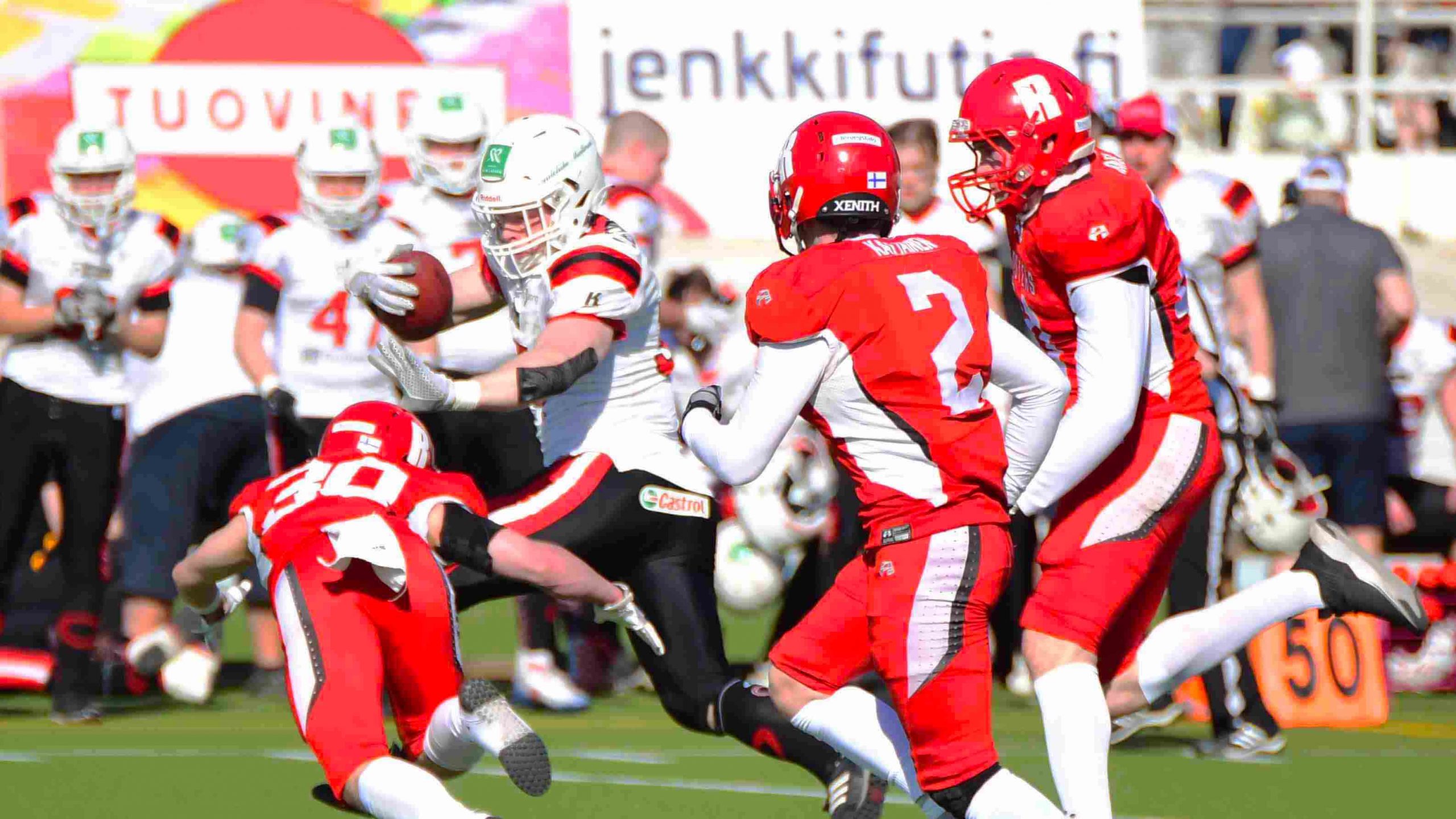 Sinodinos toki heitti pelissä kolme touchdownia, jotka koppasivat nimiinsä Santtu Vehkomäki, Johannes Jauhiainen ja Joni Kotro. Varsinkin Vehkomäki tuntui oleva hyvässä vireessä keräten joukkueelleen isoilla peleillään yhteensä 129 edettyä jaardia. Ottelun jälkeisessä haastattelussa lopputulokseen pettynyt Vehkomäki vakuutti, että Sinodinos on parempi QB, miltä lauantain avauspelissä näytti: