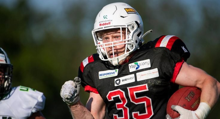 Tuukka Lehtosen 71-jaardinen TD oli lopulta ottelun ratkaisumaali. (Kuva: Jari Turunen)