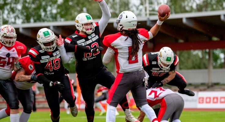 Kuopio Steelers otti ylivoimaisen voiton United Newland Crusadersista.  Lopulta varsin kapealla rosterilla Väinölänniemelle saapunut Crusaders taisteli, mutta taipui märällä kentällä kauden suurinumeroisimpaan tappioon 82-12 (49-6).