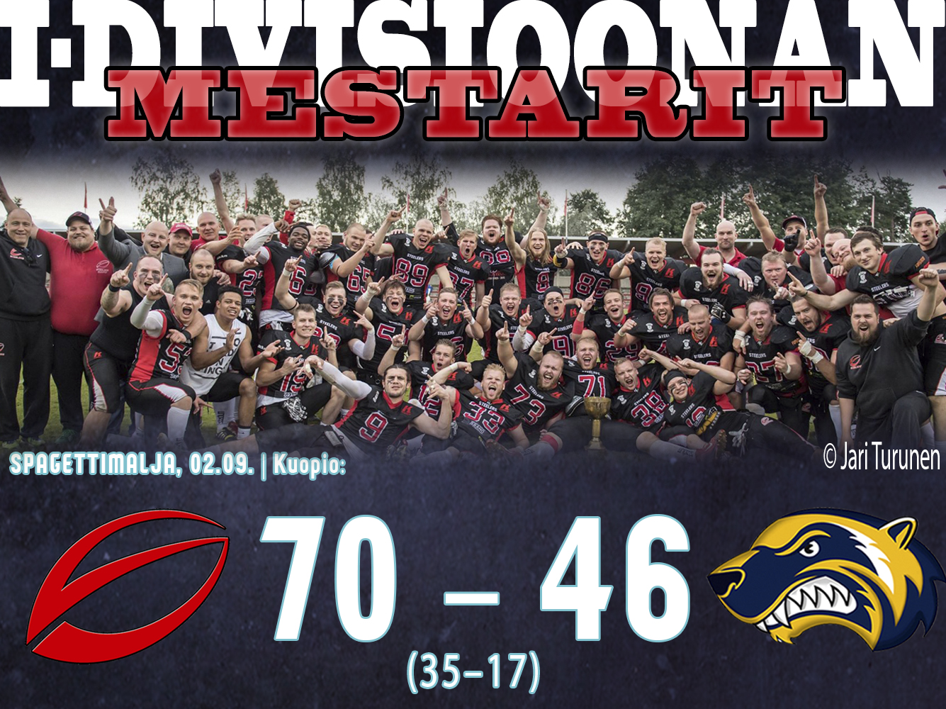 Sunnuntaina päätöksen alla on tavoitteista jälkimmäinen – nousun sinetöinti. Kriteerit on kunnossa, velvoitteet on täytetty, joten Savossa osataan odottaa Suomen Amerikkalaisen Jalkapallon Liiton hallitukselta vähintään yhtä syvää nyökkäystä kuin Del Monte -mieheltä 80-luvun TV-mainoksissa.
