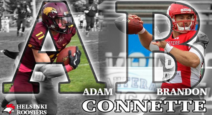 Seitsemättä perättäistä Vaahteraliiga-mestaruutta jahtaava Helsinki Roosters tiedotti torstaina tehneensä toisen yhdysvaltalaissopimuksen tulevaa kautta varten. Ainutlaatuiseksi tuoreen sopimuksen tekee se, että uusi vahvistus on ensimmäisen vahvistuksen veli. Toisin sanoen pelinrakentaja Brandon Connetten laidalla hyökkäävä pikkuveli Adam Connette pelaa ensi kesänä Roostersissa.