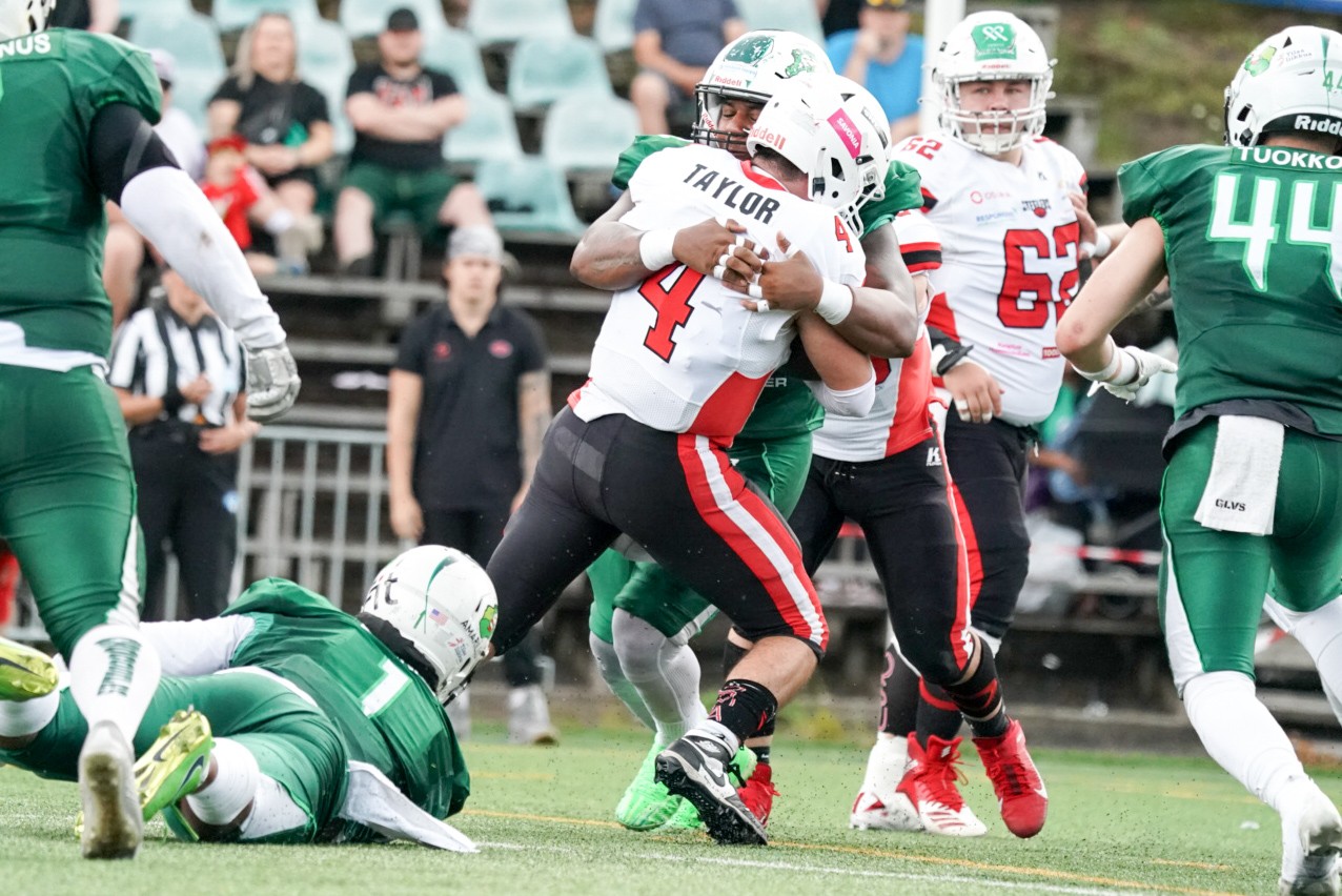 Tappiosta huolimatta Steelers saa olla tyytyväinen uuteen keskushyökkääjä hankintaansa. François-Guilhem Pion teki debyytin suomalaisille jenkkifutiskentille, ja hienon sellaisen tekikin. Ranskalainen keskushyökkääjä kantoi 24 kertaa juosten palloa, joilla nettosi 105 jaardia ja 2 td:tä.