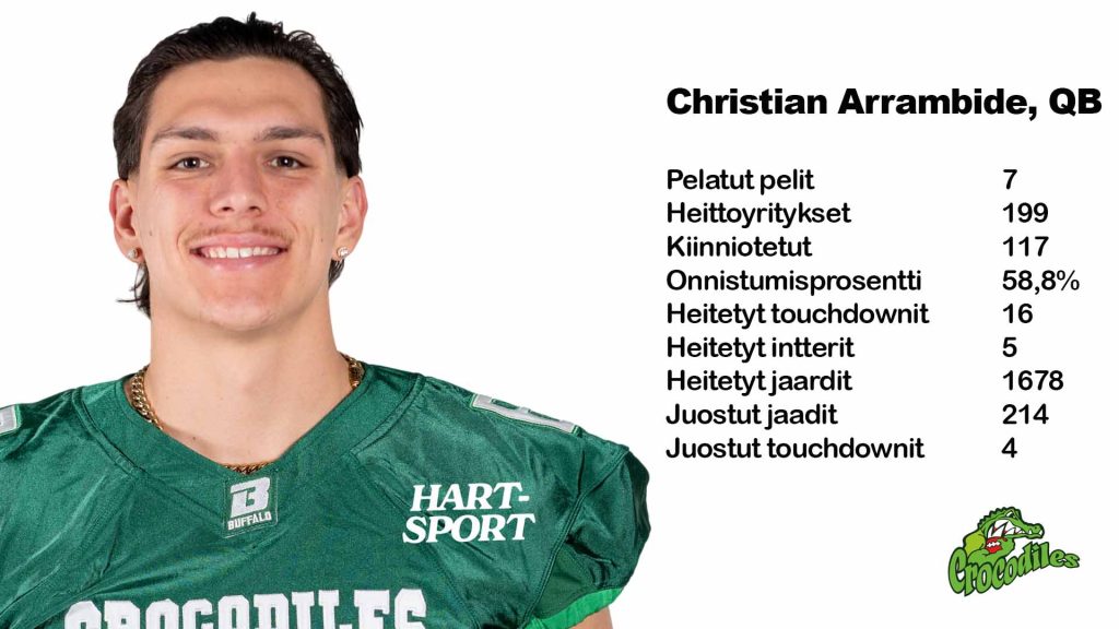 Crocojen Christian-kaksikon pitää myös olla omalla tasollaan, jotta sarjakärki kaatuu. QB Christian Arrambide on tämän pelin päätyttyä heitettyjen jaardejen tilastojen ykkönen, ollen vain 9 jaardia tällä hetkellä Brandon Gwinnerin takana. Keskushyökkääjä Christian Powell sen sijaan hoitaa tuon juoksupuolen paremmin kuin hyvin, ollen selvästi Vaahteraliigan paras etenijä kanssatovereistaan. Powell jahtaa ennätyksiä paraikaa, ja outoa olisi nähdä hänet pimennossa tässä pelissä. Toki näiden joukkueiden viime kohtaamisessa Powell jäi vaivaiseen 24 jaardiin 12 juoksuyrityksellä.
