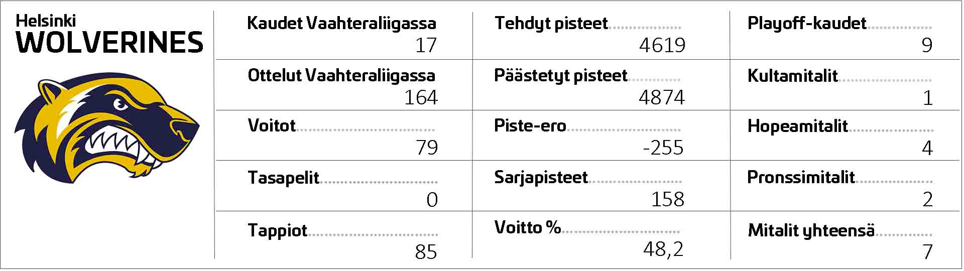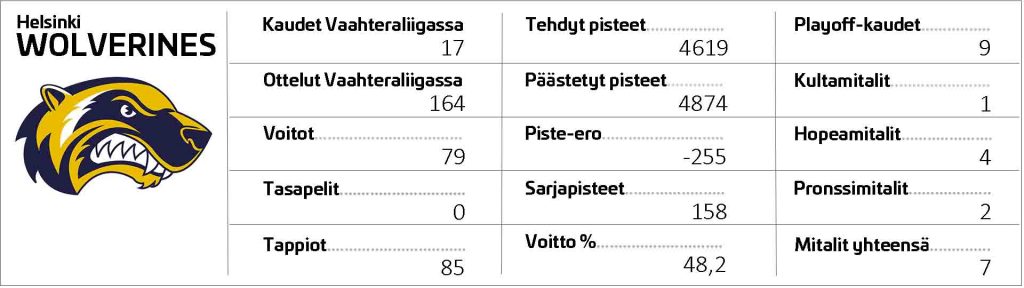 Helsinki Wolverines tippui viime kaudella playoff-pelien ulkopuolelle. Nihkeästi sujuneen kauden parasta antia olivat venymiset tiukoissa otteluissa. Nyt alkavaan kauteen seura on lähtenyt suurin odotuksin. Rosteri on ladattu täyteen talenttia ja seura on jälleen onnistunut houkuttelemaan rosteriinsa useita Suomeen kotiutuneita ”kotijenkkejä”.