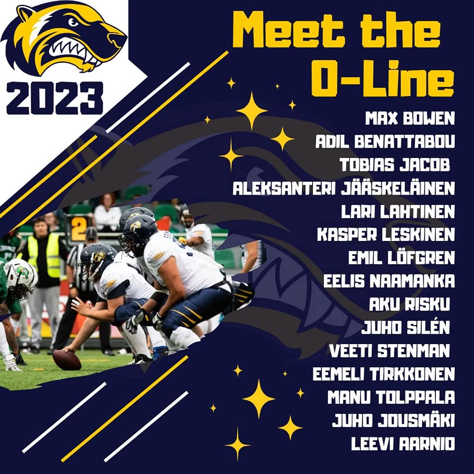 Helsinki Wolverines on julkaissut kauden 2023 hyökkäyslinjan rosterinsa.  Vaahteraliigan ohella myös miesten  I-divisioonaan osallistuva Wolverines on listannut hyökkäyslinjansa vahvuuteen 15 pelaajan nimet.