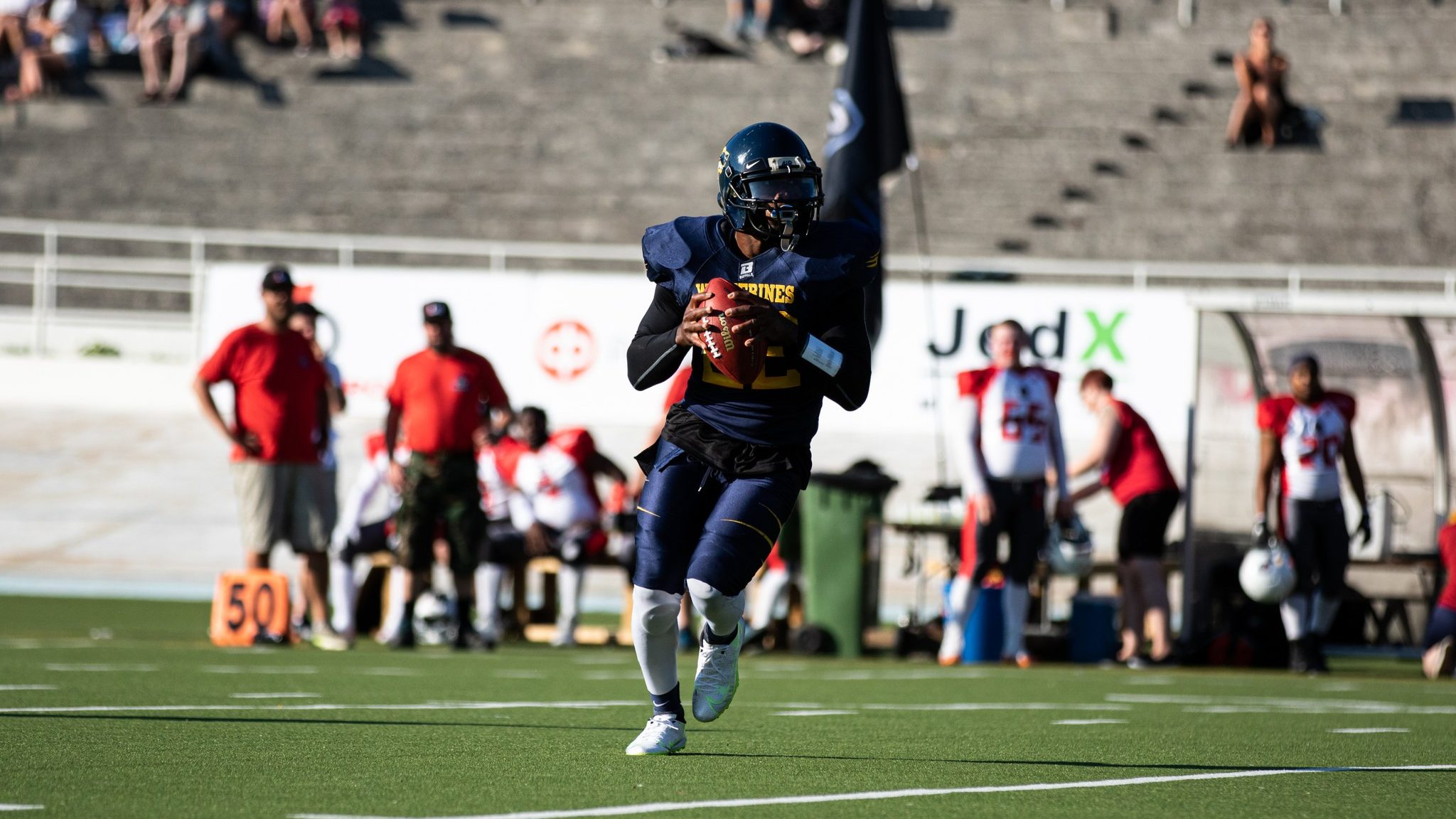 Velodromilla nähtiin perjantai-iltana melkoinen jännitysnäytelmä, kun Helsinki Wolverines ja United Newland Crusaders iskivät yhteen. Ratkaisu nähtiin vasta viimehetkillä, kun huikean päätösneljänneksen pelannut Cedric Johnson rynni pallon kanssa maaliin. Wolverinesille kauden avausvoitto lukemin 27–22 (8–8).