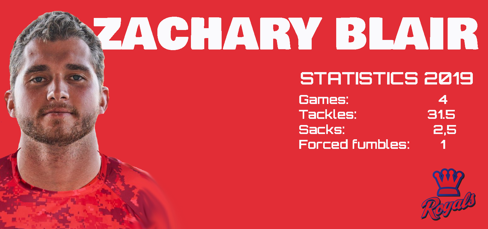 Royalsin puolustus saa kovan vahvistuksen vielä kauden alun jälkeen, kun LB Zachary Blair liittyy joukkueen vahvuuteen. Hän on mukana kokoonpanossa jo huomenna vieraspelissä Helsinki Wolverinesia vastaan.